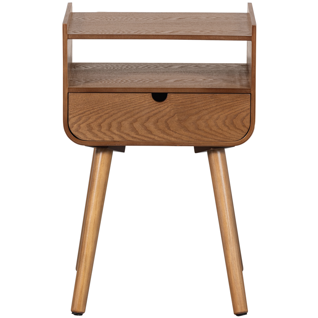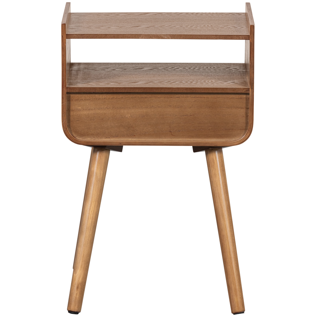 Elegant nattduksbord i naturlig träfinish med minimalistisk design, perfekt för sovrummet. Tillverkat av lackerat MDF från FSC-certifierad leverantör.