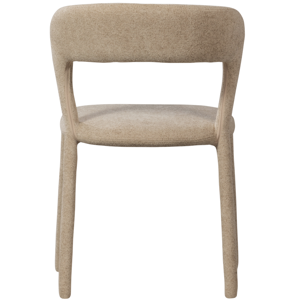 Förhöj din matplats med den stilfulla WOOOD Noble Matstol i sandfärg. Denna stol utstrålar modern elegans med sina böljande linjer och unika helt klädda ben, vilket skapar en lyxig atmosfär. Klädd i en mjuk och slitstark polyestertextil, erbjuder stolen både komfort och hållbarhet, perfekt för daglig användning.