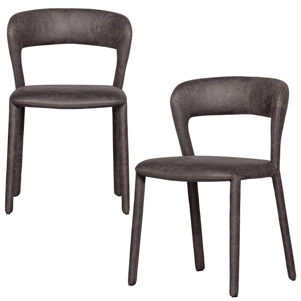 WOOOD Noble Matstol i Läderlook Svart/Grå 2 st