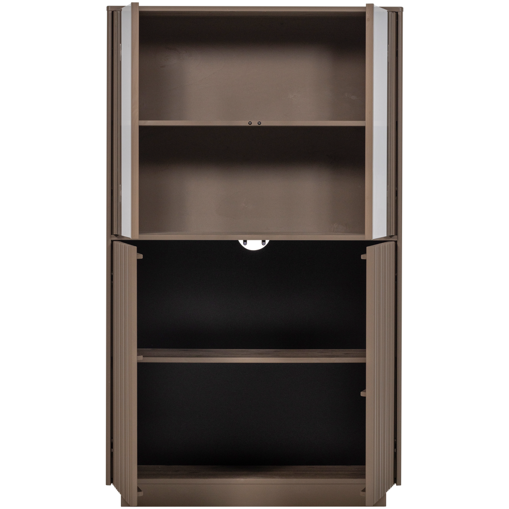 WOOOD:s Nova Låg Vitrinskåp i färgen Truffle erbjuder en sofistikerad och stilren förvaringslösning för ditt hem. Tillverkat av FSC-certifierat furu, är detta vitrinskåp inte bara miljövänligt utan också otroligt elegant. De grafiskt reliefdesignade dörrarna ger skåpet en unik karaktär och gör det till en stilfull mittpunkt i vilket rum som helst.