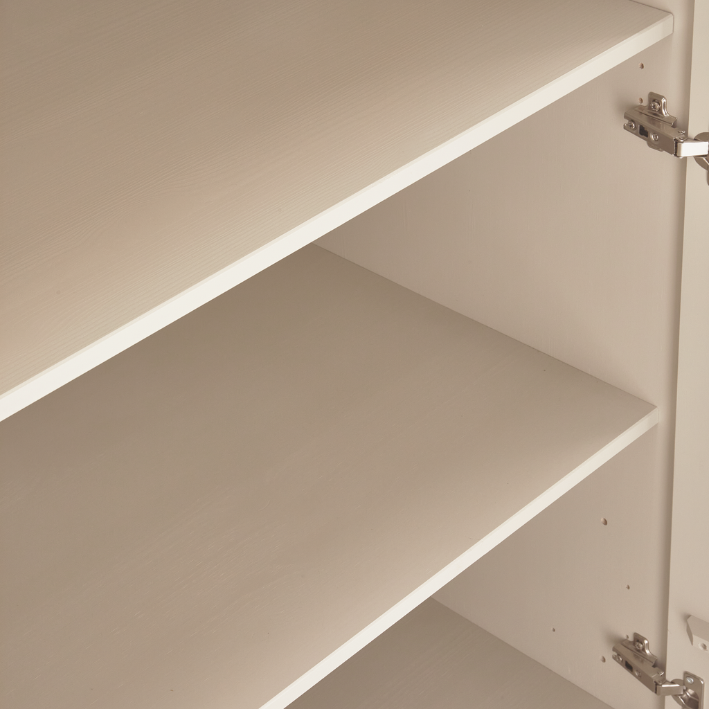 Med en behandlad yta av miljövänlig, vattenbaserad lack, är skåpet både lätt att rengöra och underhålla. Skåpet levereras i fyra paket och är enkelt att montera med medföljande instruktioner och fallskydd för extra säkerhet.