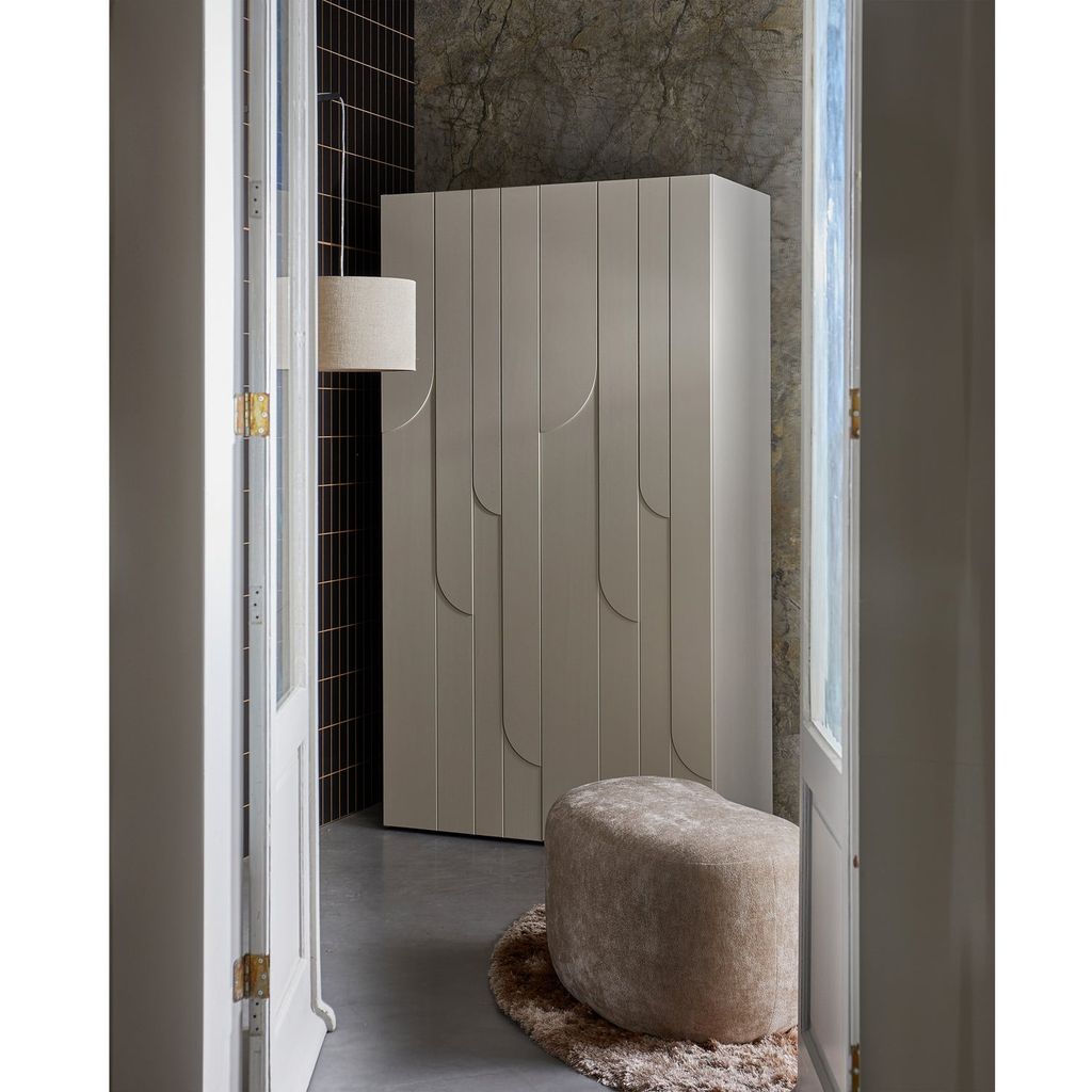 Uppgradera ditt hem med det stilfulla och funktionella WOOOD RAIN 2-dörrars förvaringsskåp. Tillverkat av FSC-certifierad furu, kombinerar detta skåp hållbarhet med modern design. Den dammfärgade finishen ger en sofistikerad touch, medan de vågformade sniderierna påminner om regndroppar och skapar en unik visuell upplevelse.