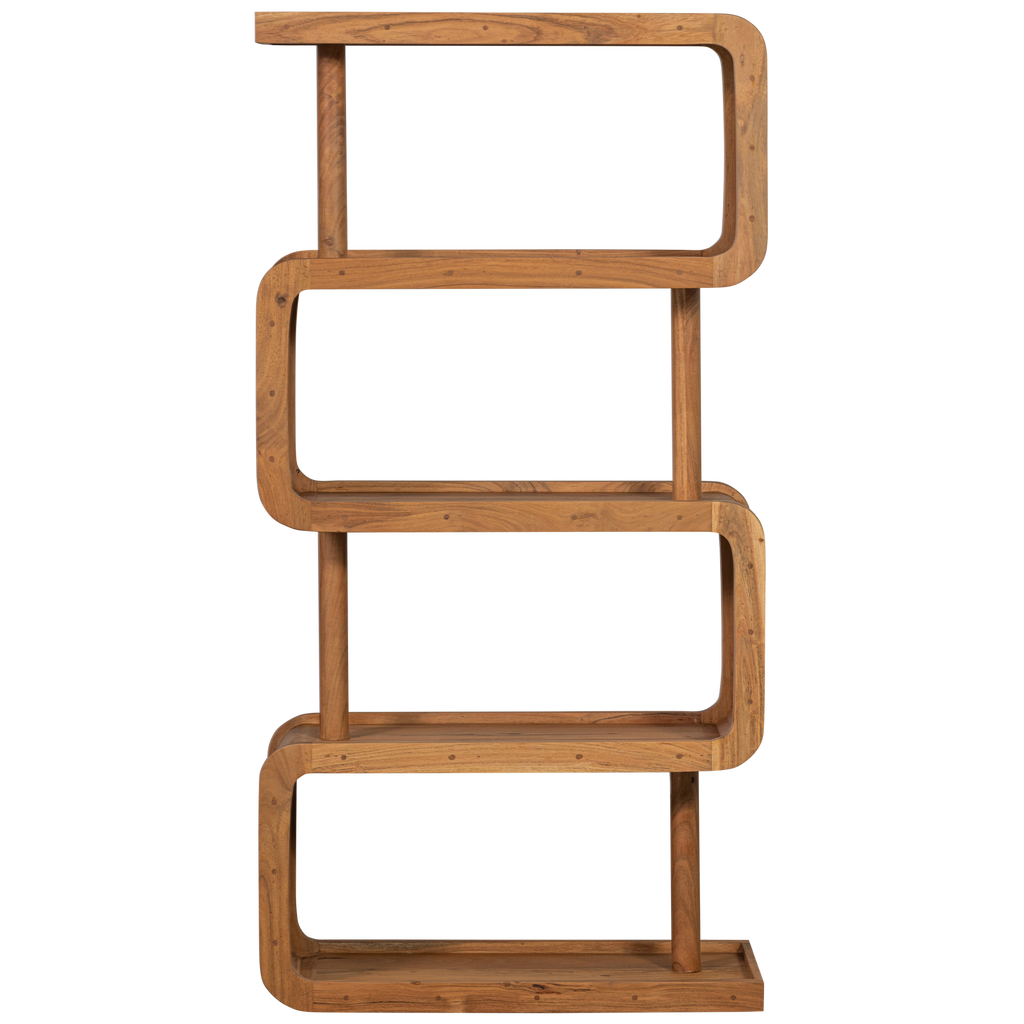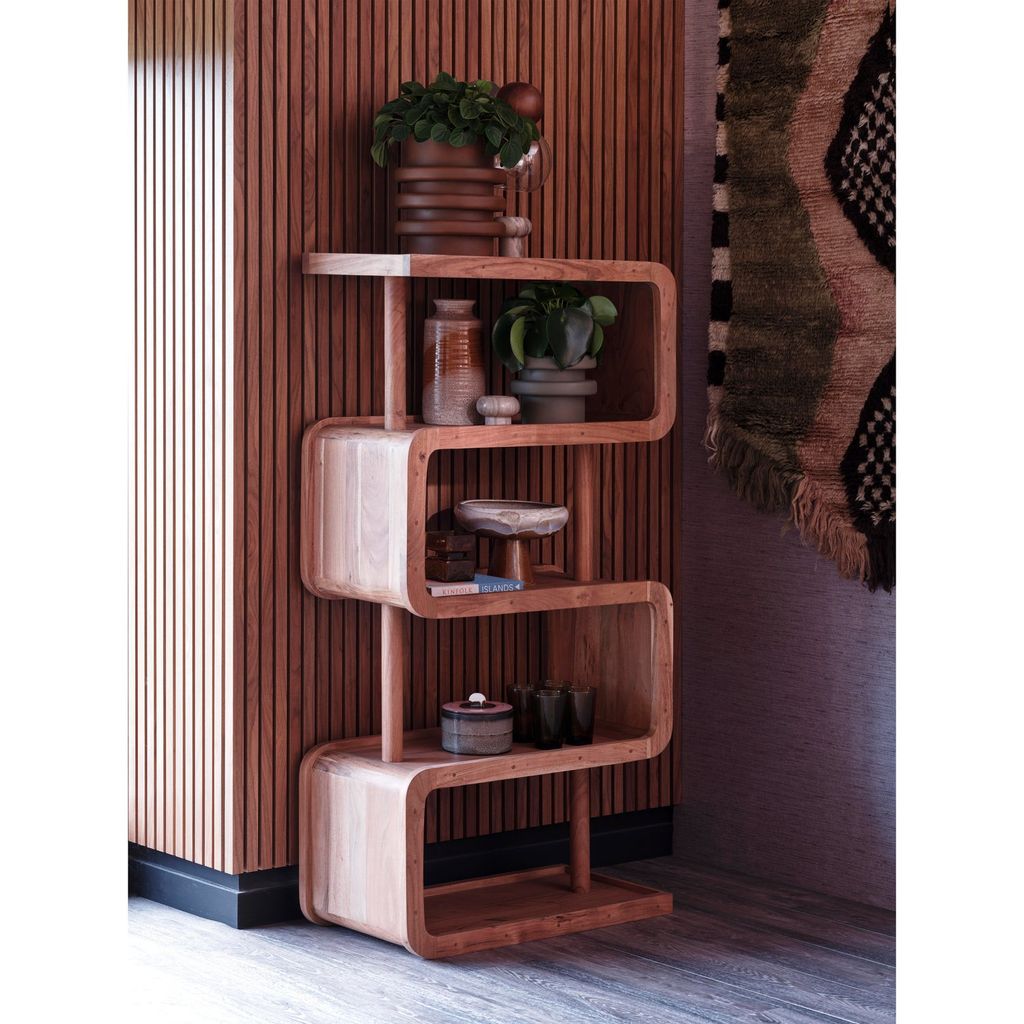 Upptäck skönheten i WOOOD Rattle öppen hylla, ett mästerverk i organiskt formad design. Hyllan är tillverkad av hållbart behandlat akaciahus, vilket ger den en iögonfallande rödbrun nyans som mjuknar och förädlas med tiden. Med dess unika form inspirerad av en ratelslang, erbjuder denna hylla oändliga möjligheter att visa upp dina mest värdefulla dekorationer och minnen.