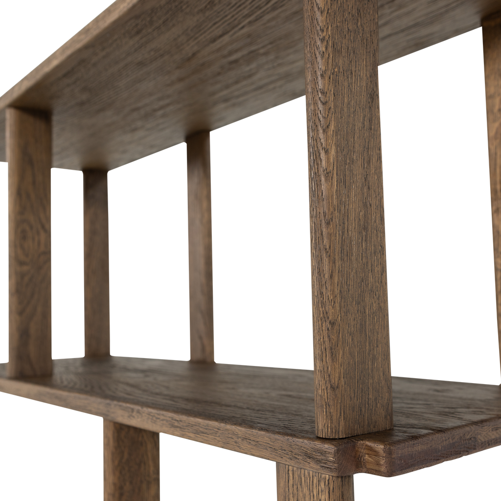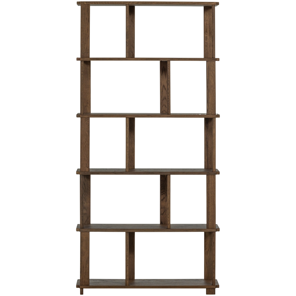 Upptäck skönheten i WOOOD RISS bokhylla, en modern och kreativ möbel från det nederländska märket WOOOD. Tillverkad av hållbart ekträ med en naturlig finish, erbjuder bokhyllan en ljusbrun ton med subtila gula nyanser och synliga ådringar, vilket ger ett varmt och inbjudande intryck.