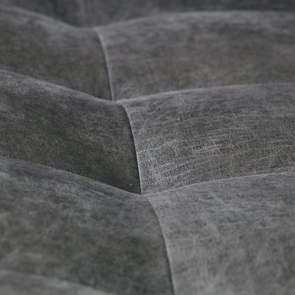 Soffans ram består av en kombination av massivt trä, spånskiva och kartong, vilket ger styrka och stabilitet. Den har en zigzag-fjädring och en skumfyllning T3037 för bästa komfort. Ryggstödet är fyllt med 70% skuret skum och 30% silikon för extra stöd.