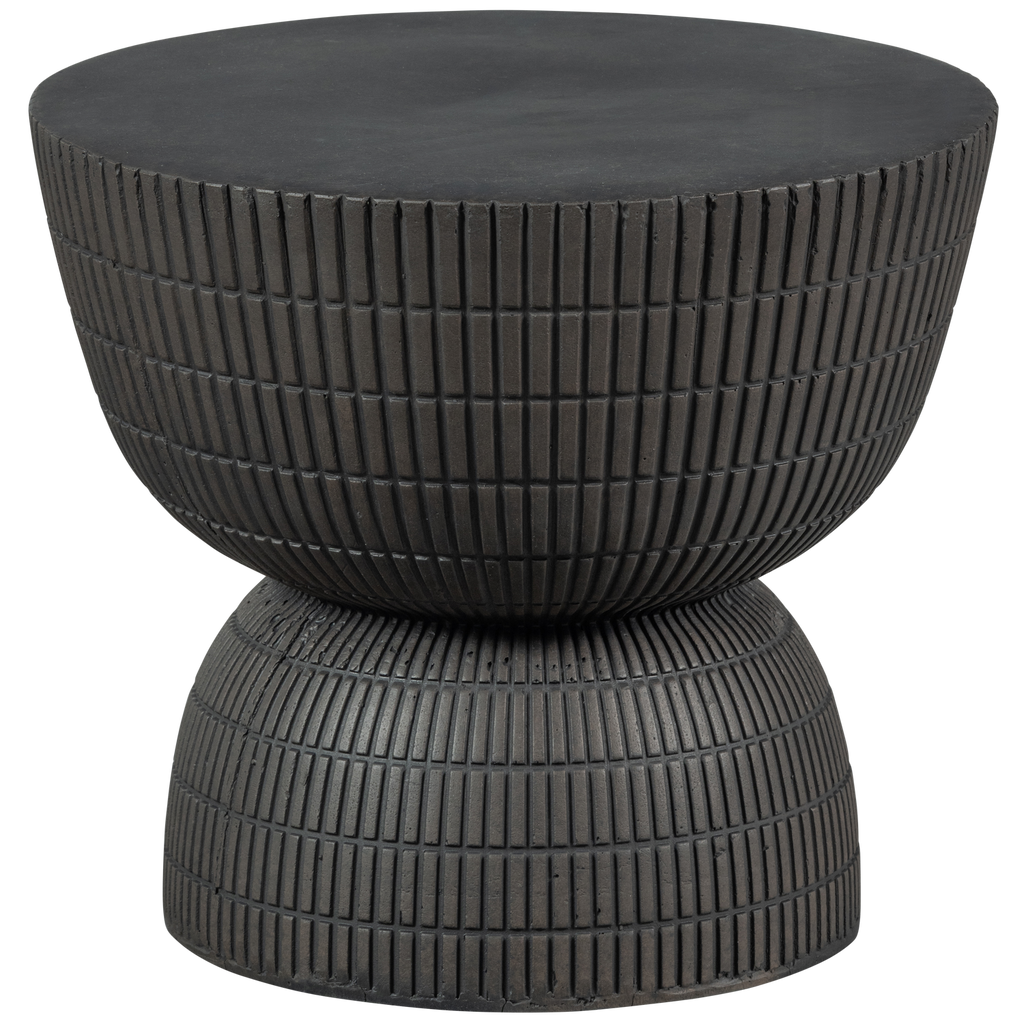 Stilrent och robust sidobord i fiberlera med unik reliefdesign. Perfekt för en modern och inbjudande atmosfär i ditt hem.
