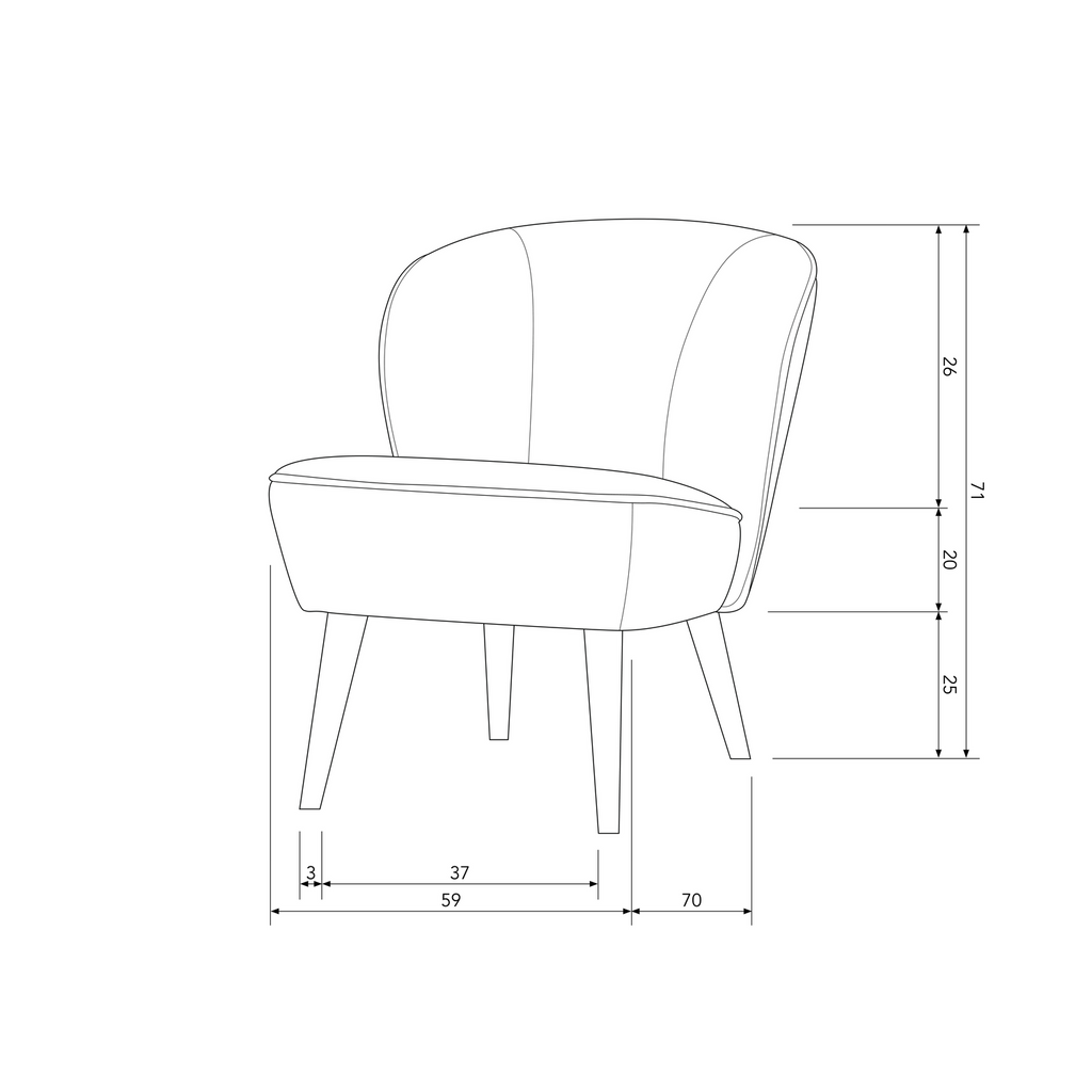 Med måtten Höjd 71 cm x Bredd 59 cm x Djup 70 cm och en sitthöjd på 44 cm, är den perfekt för både små och stora rum. Den är lätt att underhålla med en mild rengöringsmedel och mikrofiberduk. Enkel montering medföljer för benmontering, och filtglidare rekommenderas för att skydda ditt hårda golv.