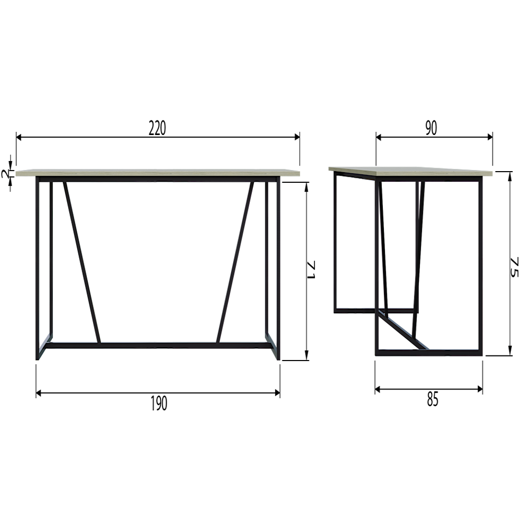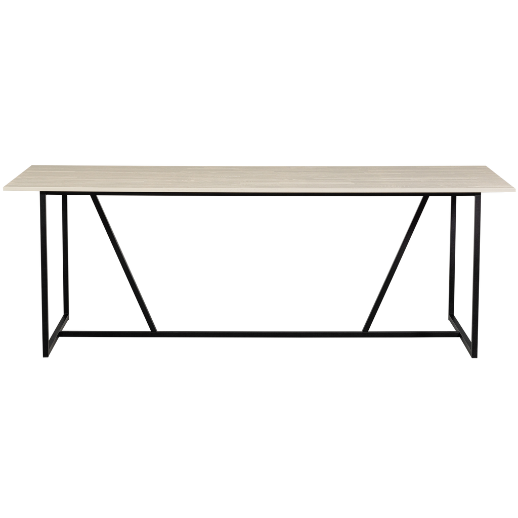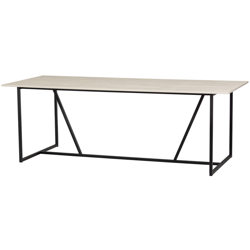 Modernt matbord av FSC-certifierat askträ i ljusgrått med svart metallunderrede. Rymmer 6-8 personer.
