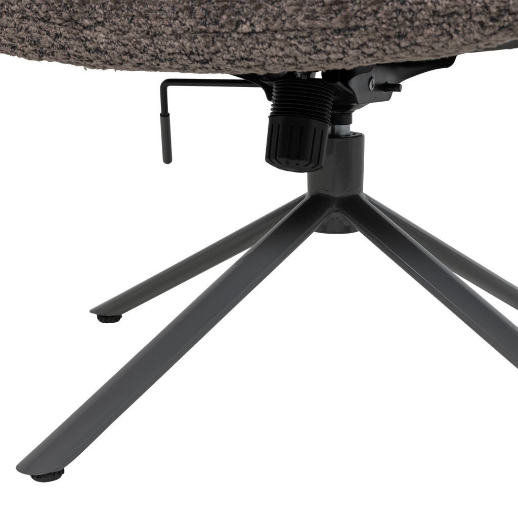 Njut av optimal komfort med WOOOD Sorens justerbara snurrfåtölj i brun, klädd i mjukt ulligt Bear-tyg för en elegant och bekväm inredning.