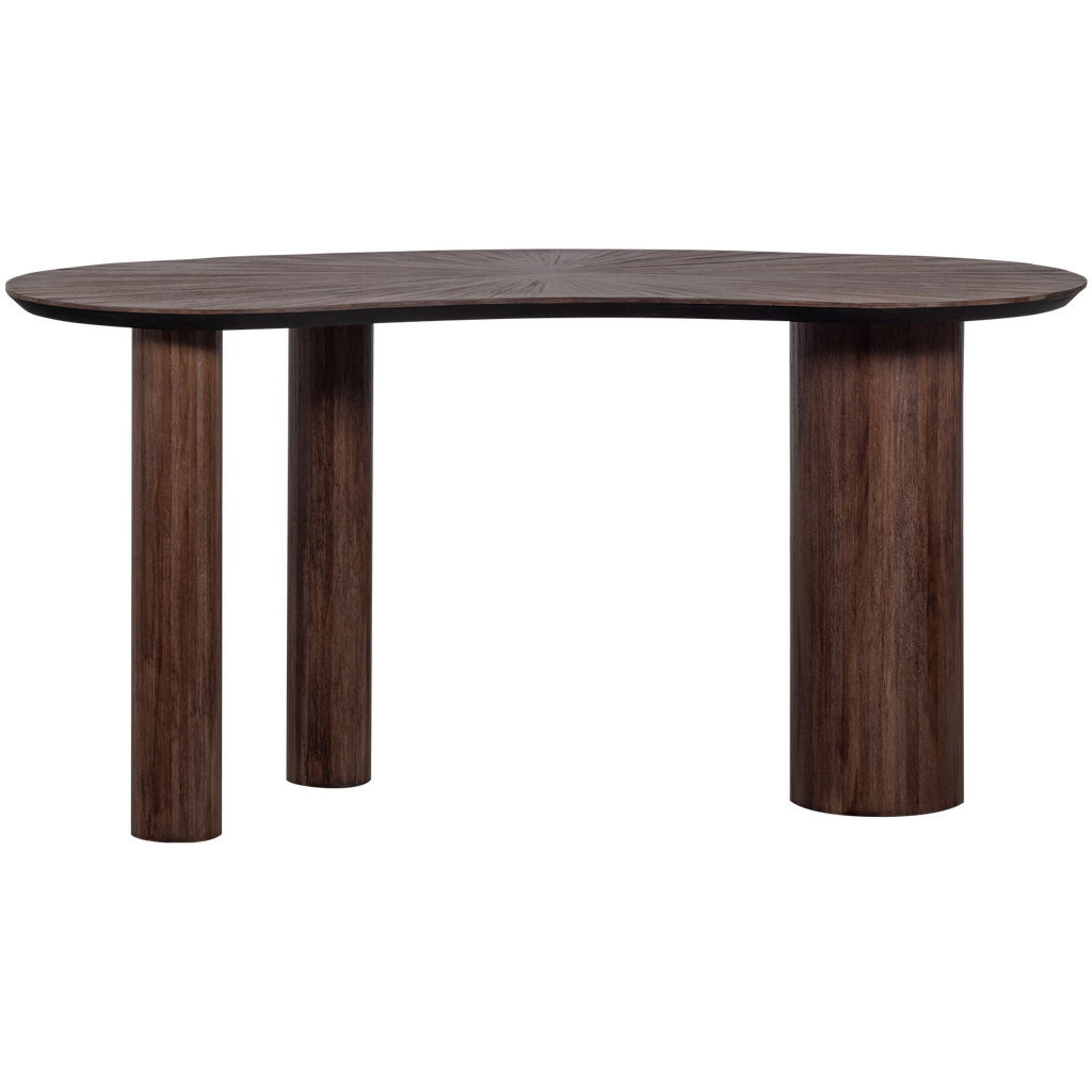 Med sina mått - höjd 76 cm, bredd 150 cm och djup 62 cm - erbjuder bordet gott om utrymme för både arbete och dekoration. Den unika organiska formen kompletteras av tre robusta ben med en elegant rundad form, vilket gör det till ett stilrent tillskott till vilket rum som helst.