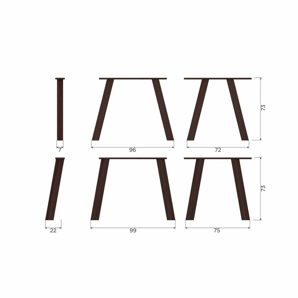 Bordsskivan och benen är behandlade med en vattenbaserad bets som framhäver den vackra mörkbruna färgen och det lekfulla finger-skarvsmönstret, vilket ger varje bord en unik karaktär.