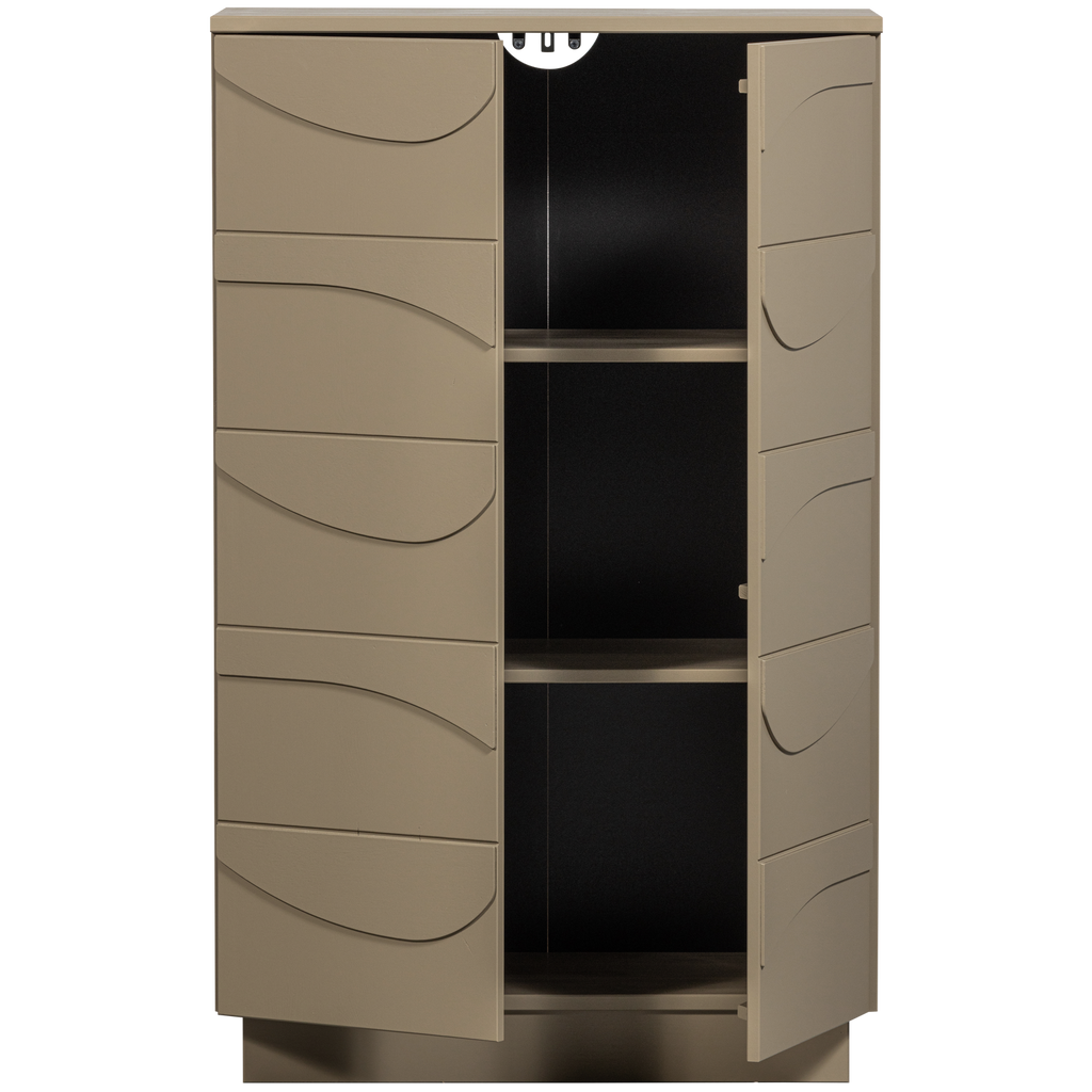 Gör ditt hem komplett med detta eleganta WOOOD TEO Skåp. Skåpet har en unik 3D-design som lyfter fram dess organiska linjer, vilket gör det till ett blickfång i vilket rum som helst. Tillverkat av FSC-mix certifierat grenen, kombinerar detta skåp stil och hållbarhet. Den jordnära Mud-färgen och den mjuka ytan ger ditt hem en känsla av värme och naturlighet.