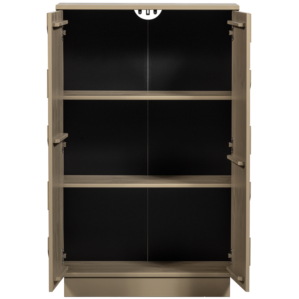 Uppdatera ditt hem med WOOOD TEO Skåp i jordnära Mud färg, med en stilren 3D-design och hållbart FSC-certifierat trä.