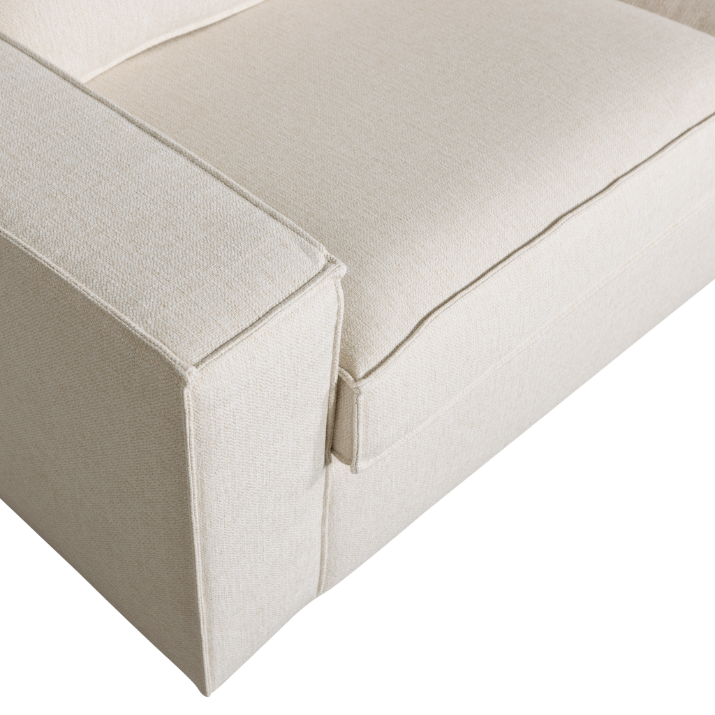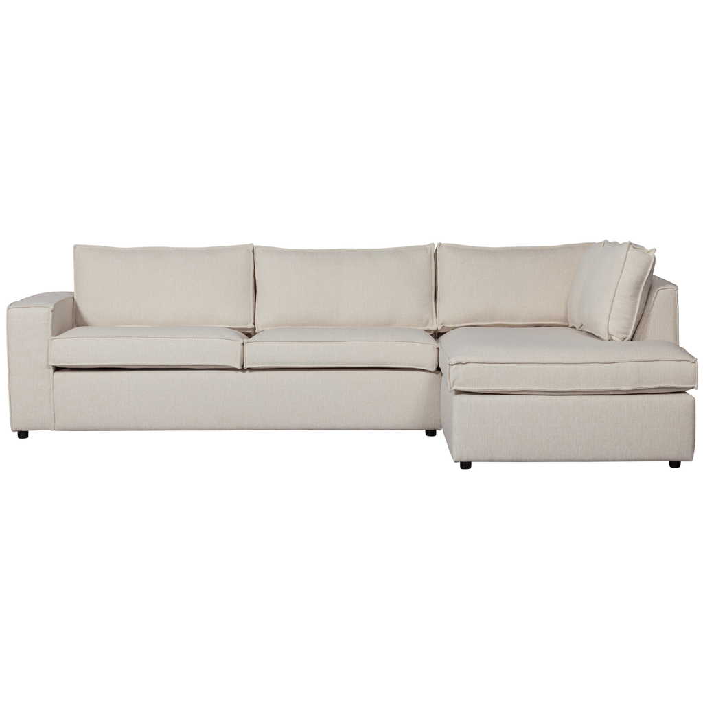 Den WOOOD Thomas Hörnsoffa Höger är en elegant och bekväm möbel som passar perfekt i alla moderna hem. Med sin mjuka, sandfärgade vävda tyg av 100% polyester erbjuder denna soffa en stilren och inbjudande atmosfär.