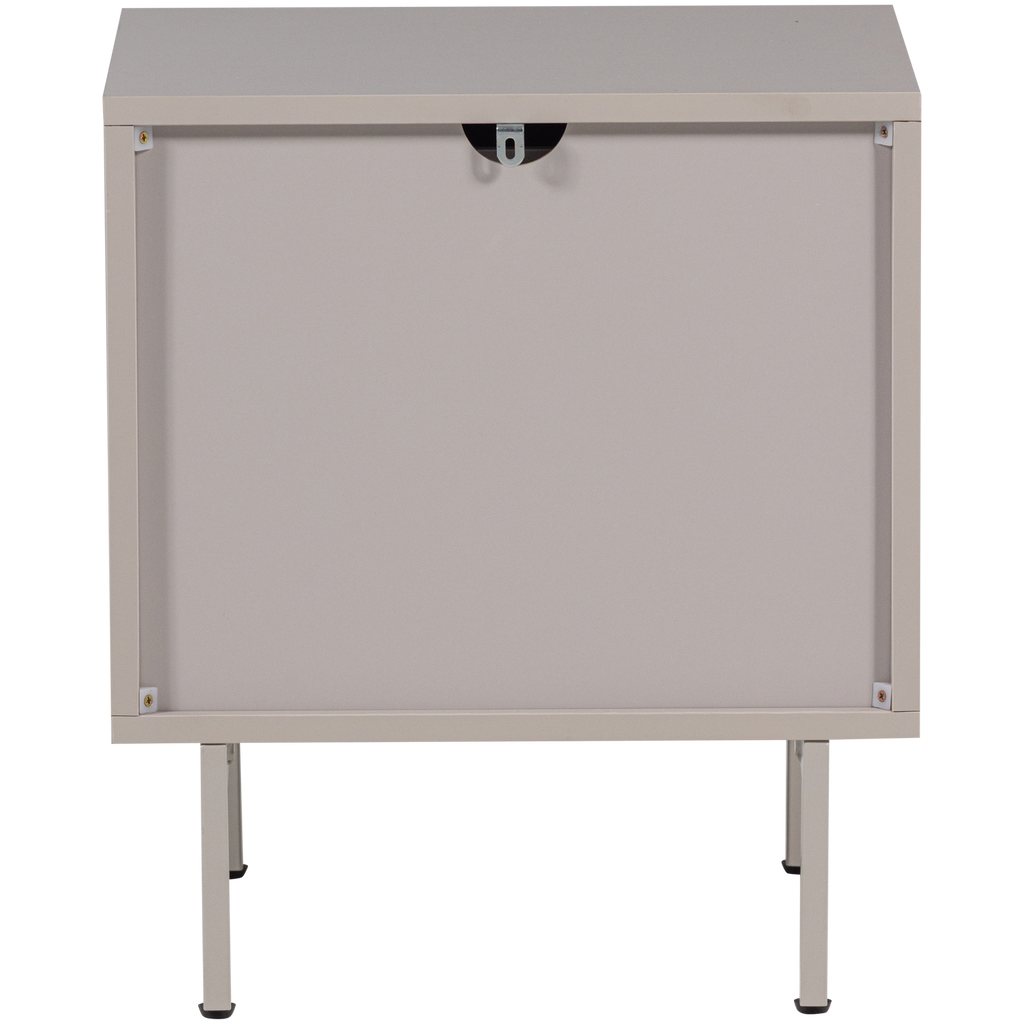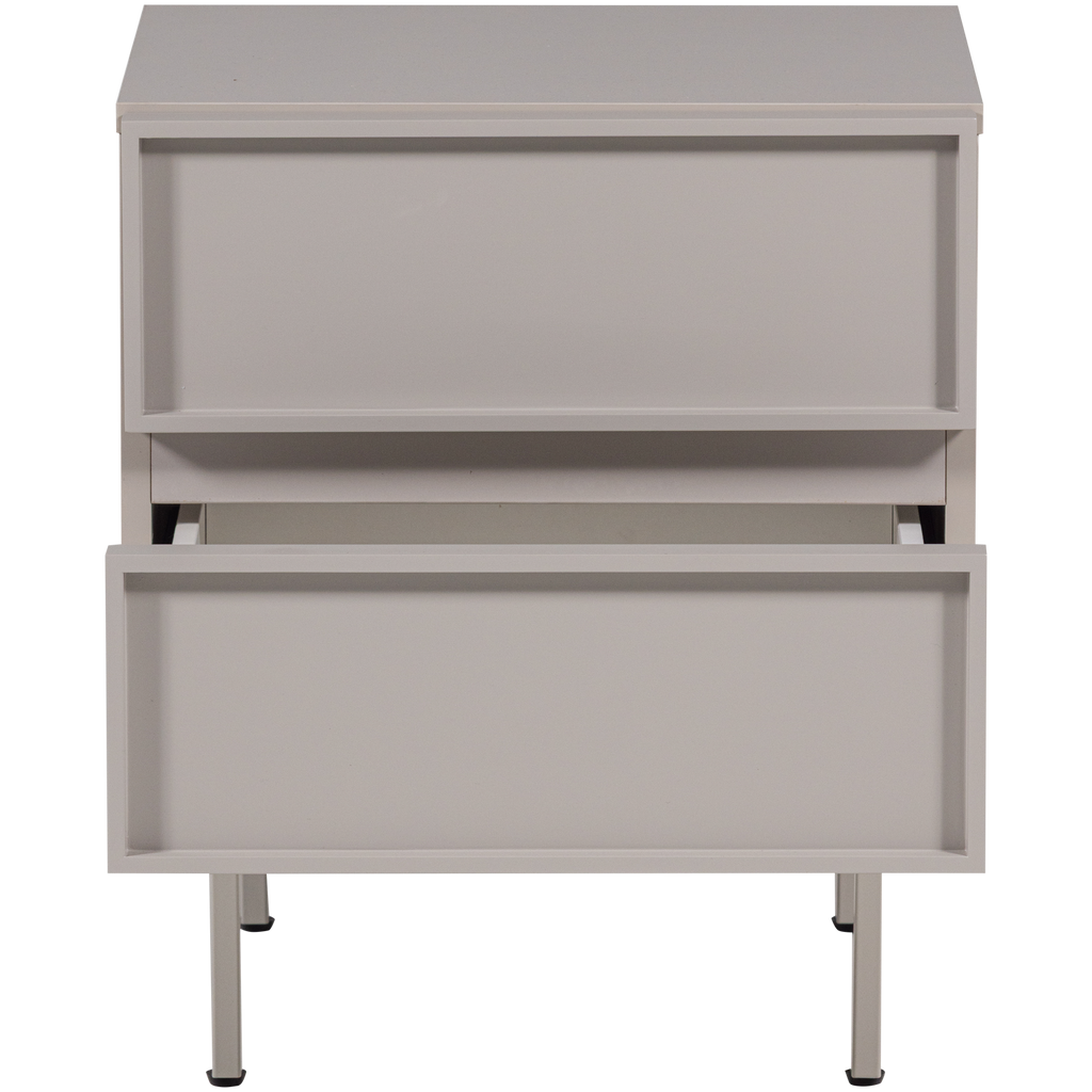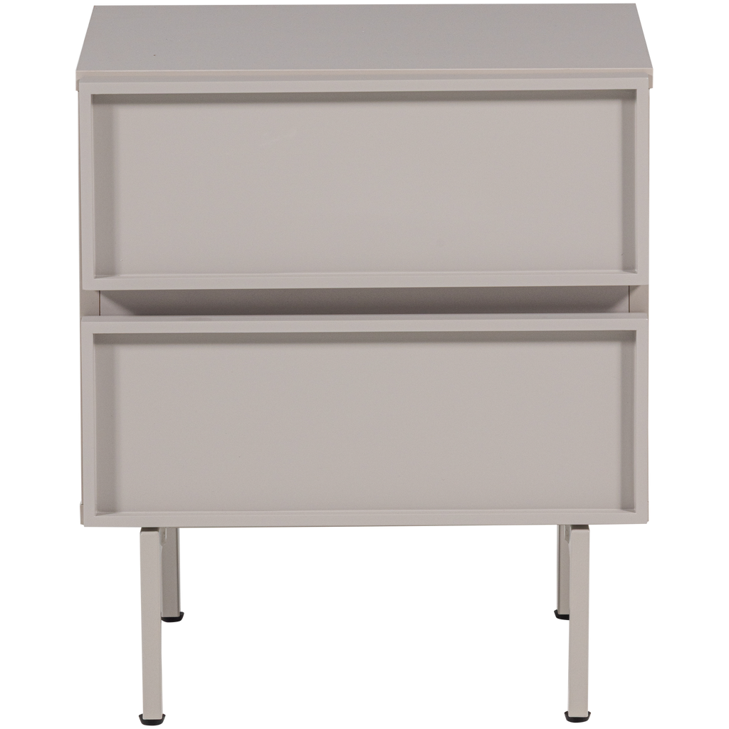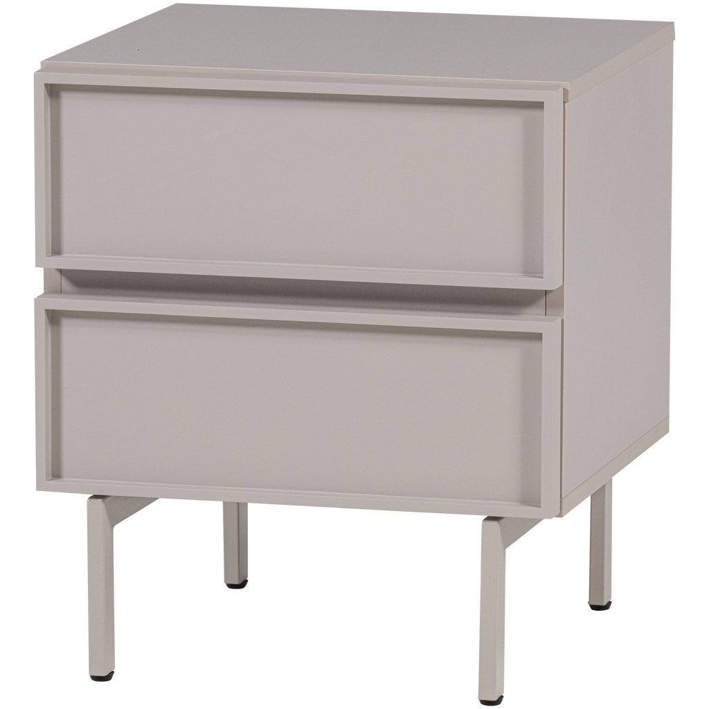 Med sina mått på 51 cm i höjd, 45 cm i bredd, och 42 cm i djup, är det designat för att passa smidigt in i olika rumsmiljöer. Den mjuka sandfärgen ger en lugnande estetisk känsla, medan de två rymliga lådorna erbjuder gott om förvaringsutrymme för dina personliga tillhörigheter.