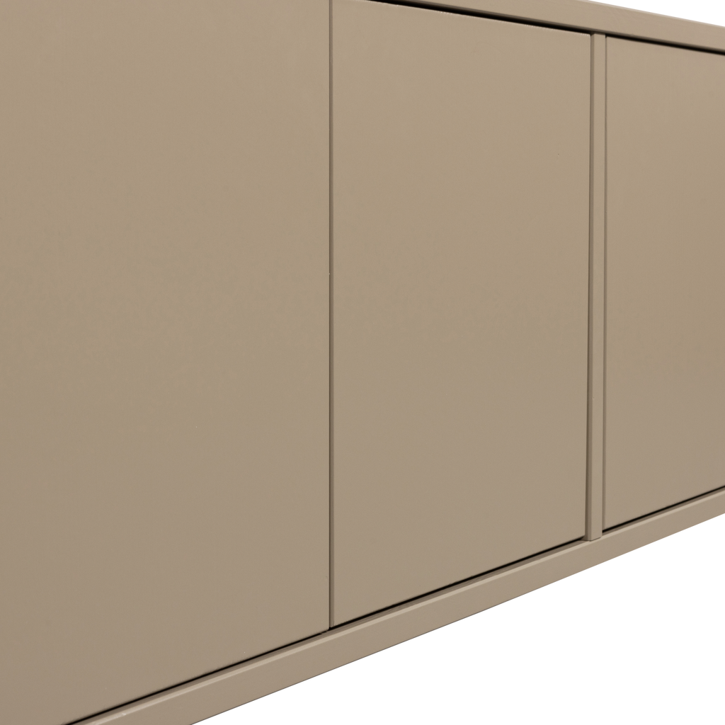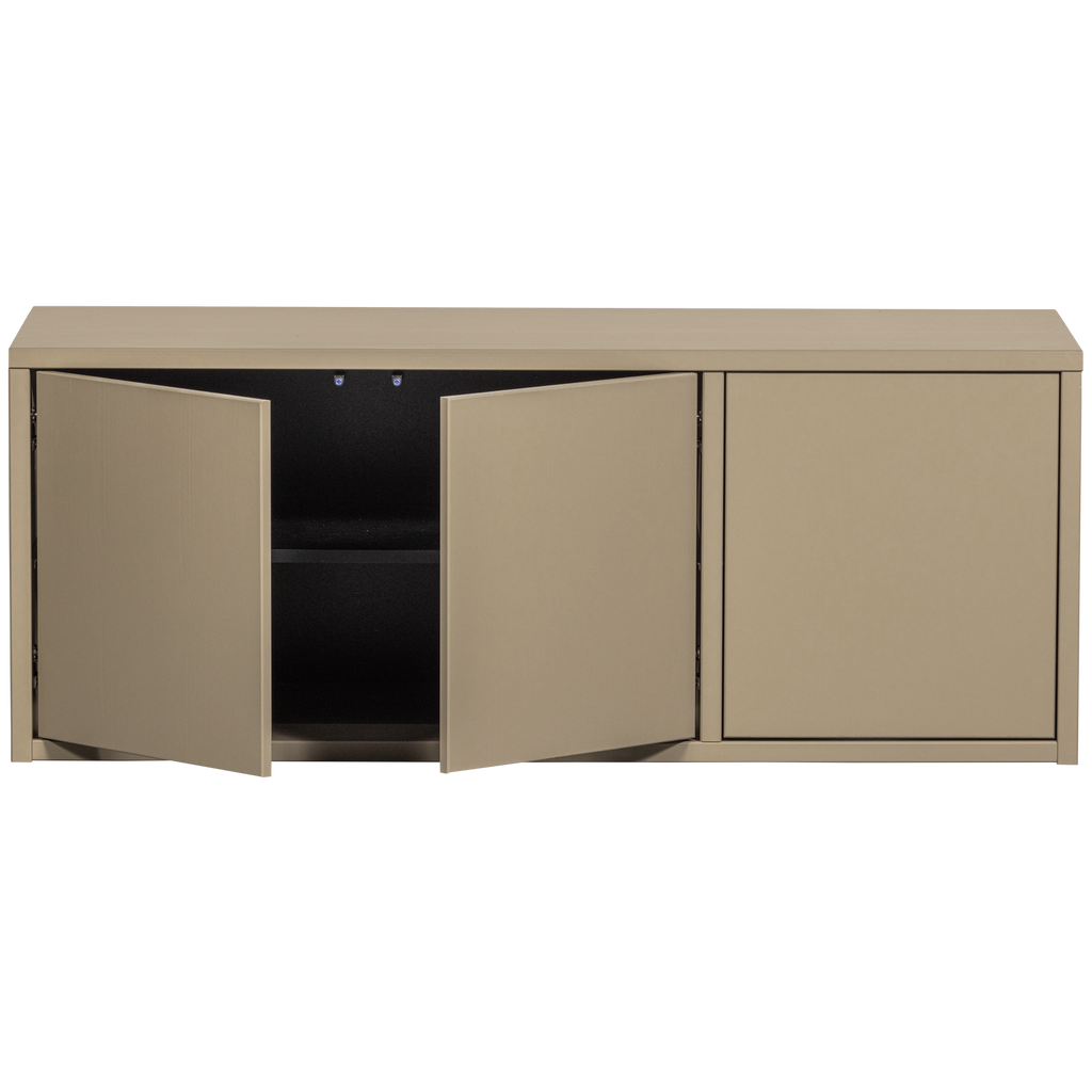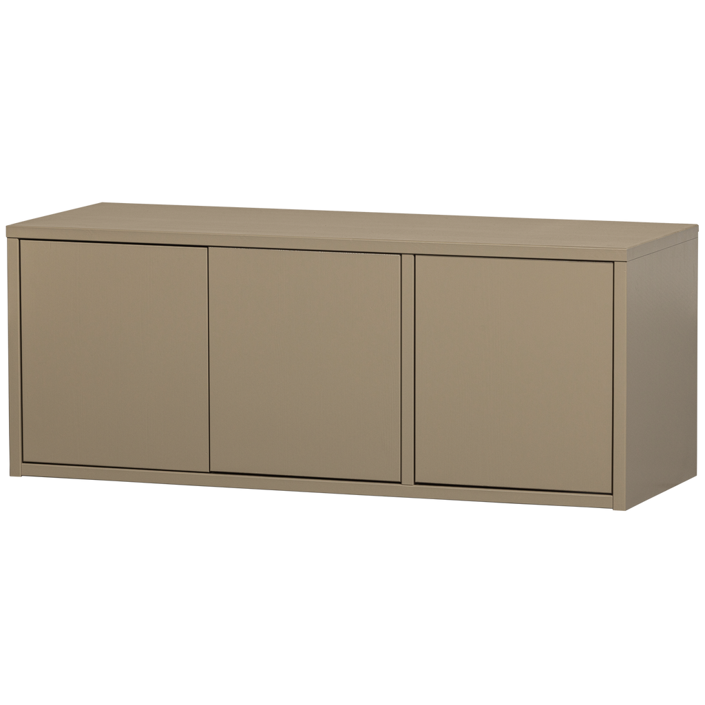 Med sin greppfria och mjuka mudfärgade yta, smälter bänken sömlöst in i modern inredning. Den har en slät yta och klarar vikter upp till 50 kg på ovansidan och 15 kg per hylla.