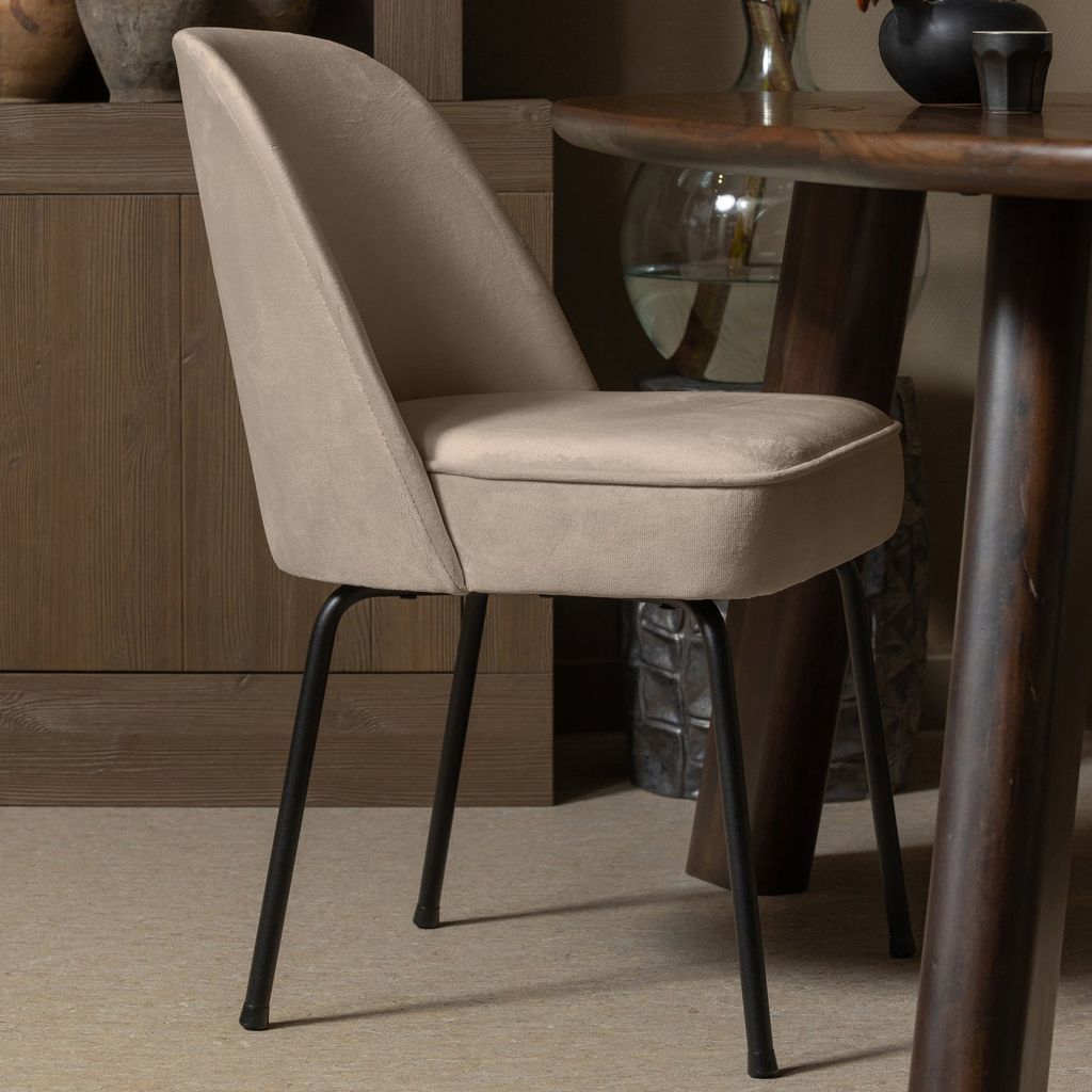 Upptäck den eleganta WOOOD Vogue matstolen, ett perfekt val för dig som uppskattar stil och komfort. Den är klädd i en lättglansig Jarra-sammet i en vacker khaki färg, vilket ger ett lyxigt utseende och en mjuk känsla. Denna stol är inte bara en fröjd för ögat, utan också otroligt bekväm tack vare dess vänliga, runda former.