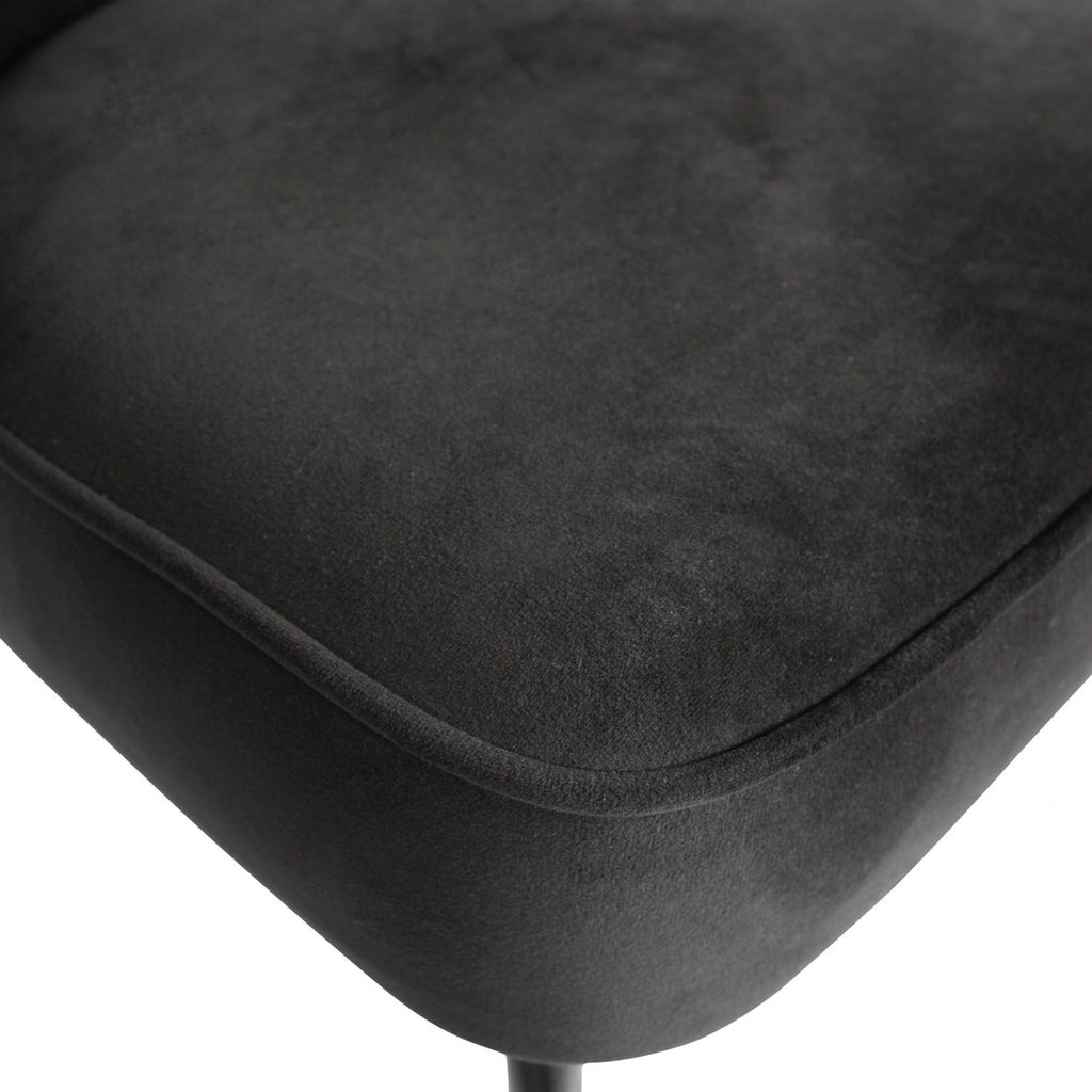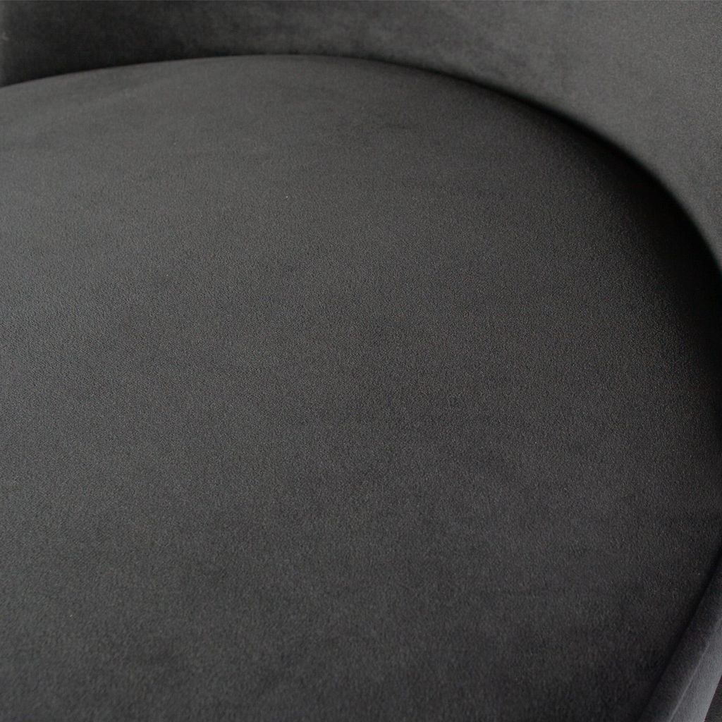 Elegant och bekväm matstol i svart sammet med mjuka former. Perfekt för moderna inredningar.