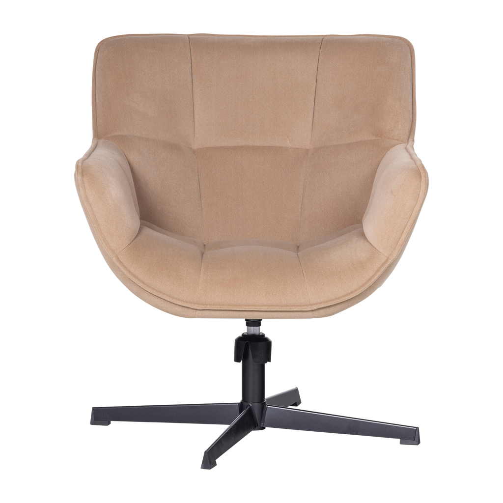 Ge ditt hem en touch av elegans med WOOOD WIBO snurrfåtölj i sandfärgad sammet, perfekt för moderna miljöer.