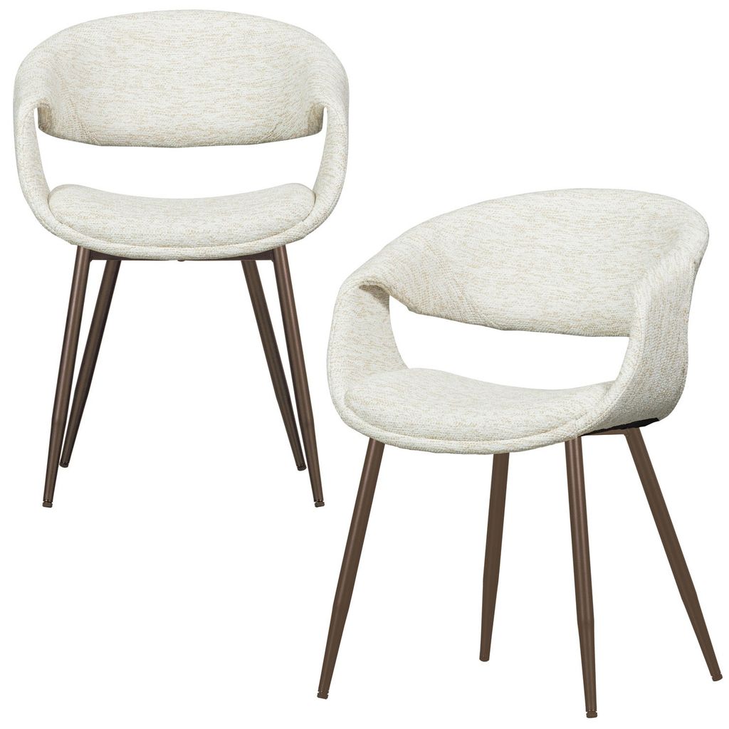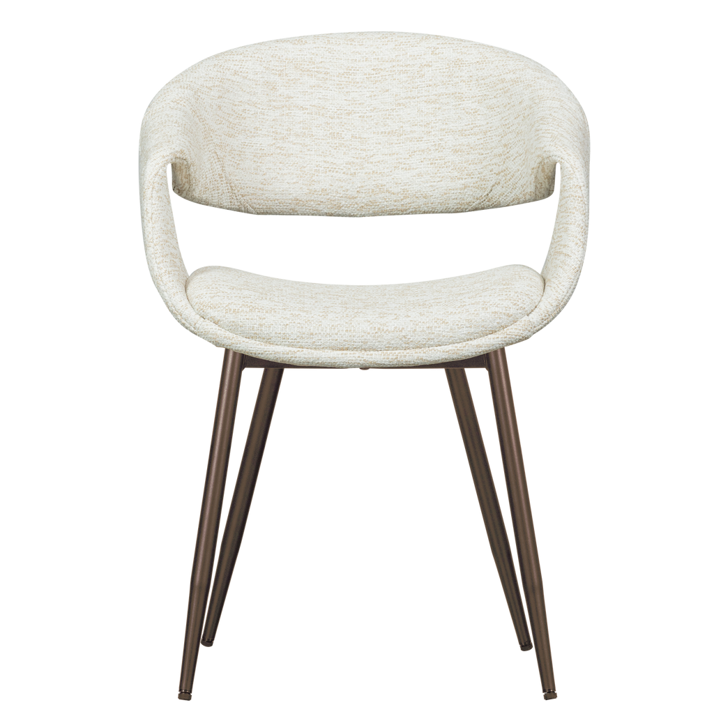 De stabila metallbenen har en elegant kopparfinish, vilket ger en sofistikerad touch till helheten. Stolen är utformad för komfort, med en ryggstöd och sits som inbjuder till långa, trevliga middagar.