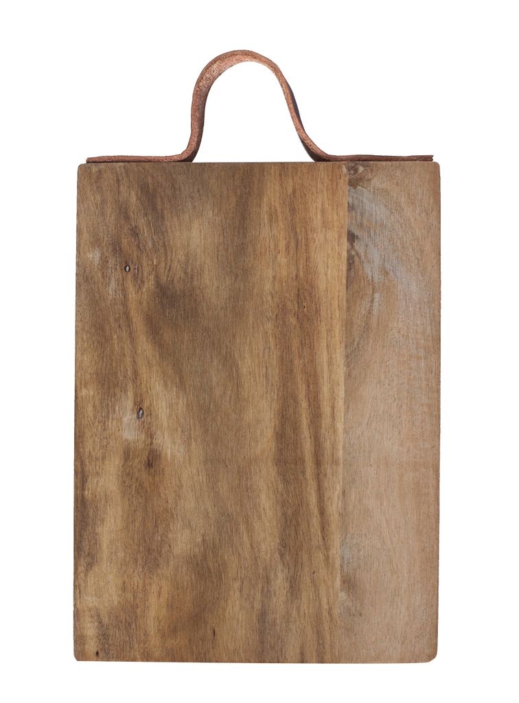 Dekorativ serveringsbricka i FSC-märkt akaciaträ som ger brickan en rustik känsla. Brickan har ett vacker och hållbart läderhantag som känns mjukt och smidigt i handen. Serveringsbrickan har ett brett användingsområden och fungerar utmärkt till att exempelvis servera kallskuret, ostar eller frukt.