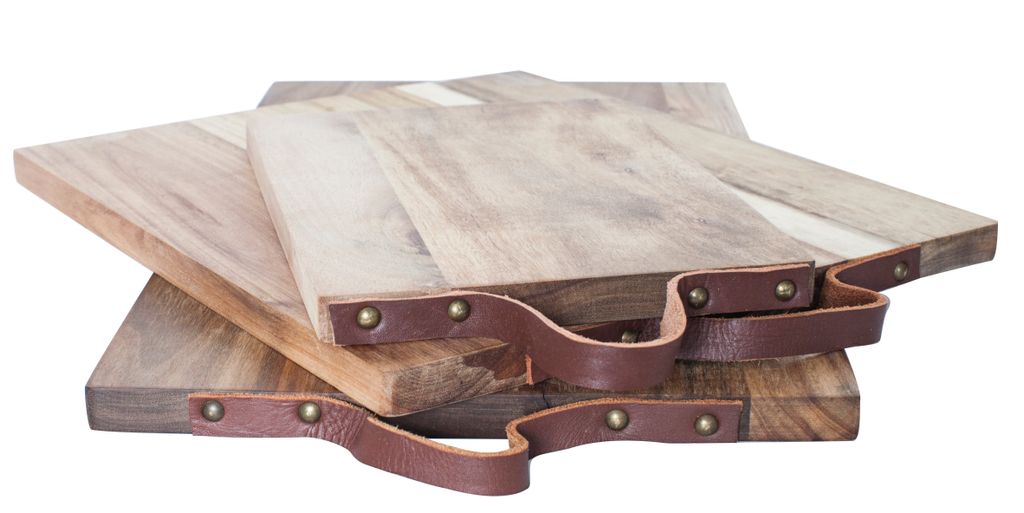 - Material: FSC Akacia med läderhandtag