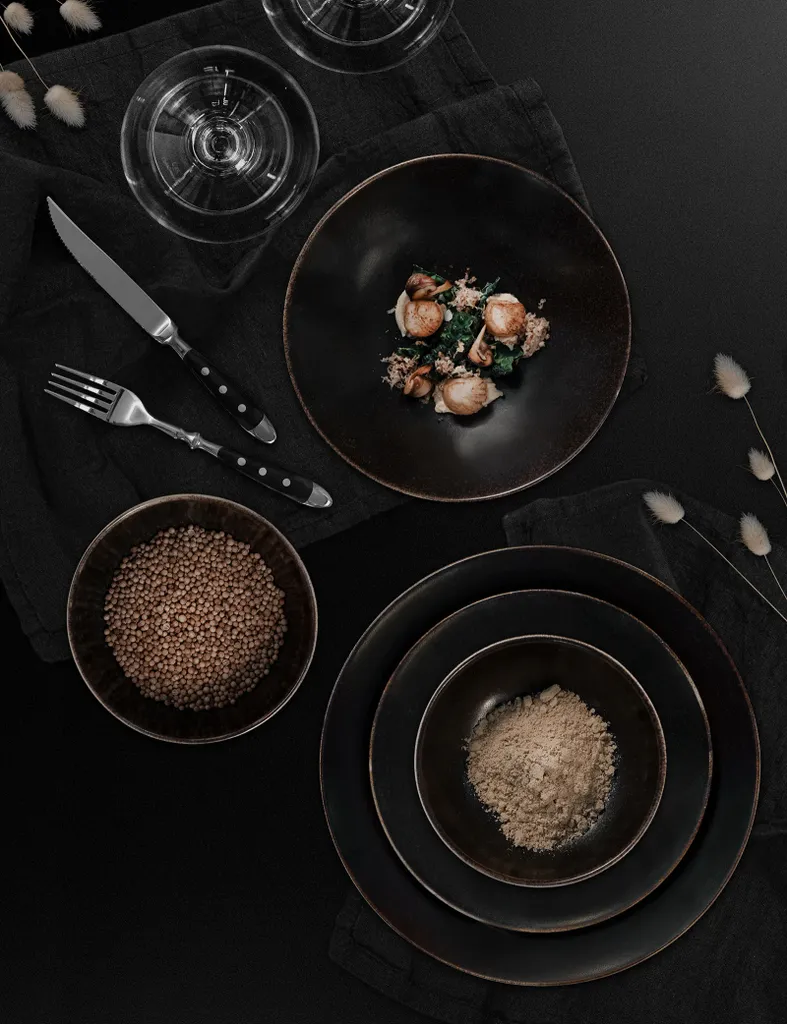 - Material: Fältspatporslin, brun/svart